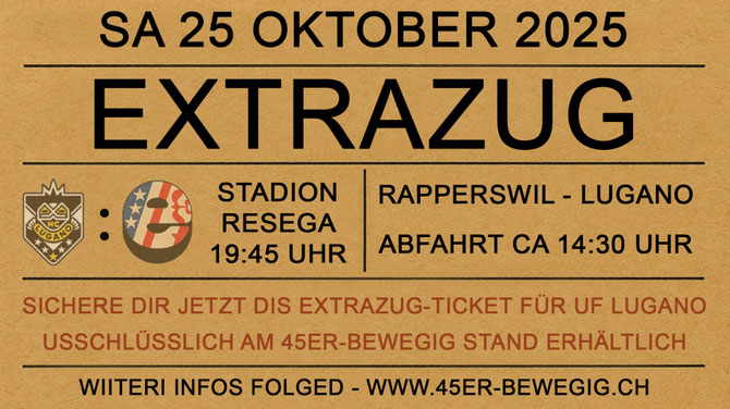 Verkauf am Stand der 45er-Bewegig im Rundgang beim Gitter Stehplatz / Sektor A. Ab 18:15, in den Pausen und nach dem Spiel.